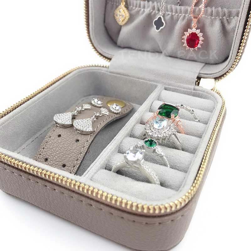 Pu Leather Travel Jewelry Organizer Boxes with zipper closure, good craft leather for exterior, soft suede interior offers ideal care and fully protection for your jewelr in travel.